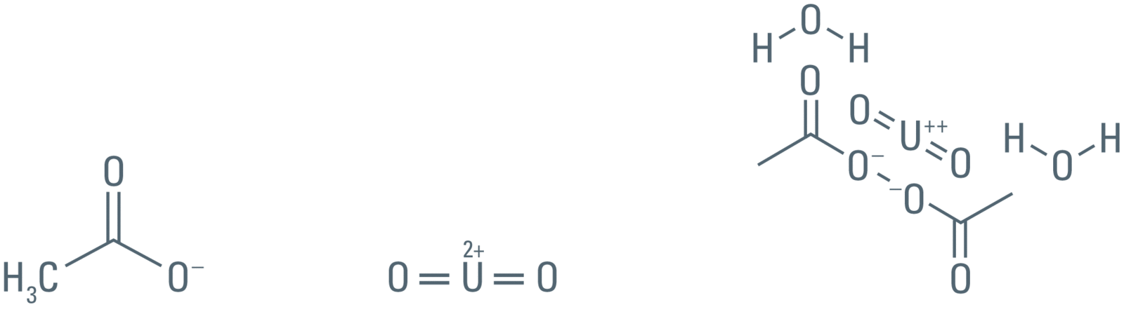 当UA溶解在水中时,溶液的pH值将根据浓度(0.5%到3%)从4.2到4.9不等。在这个pH值下,带正电荷的铀酰种类占优势,染色溶液提供了充分的对比。带负电荷的分子,如核酸,染色效果特别好。