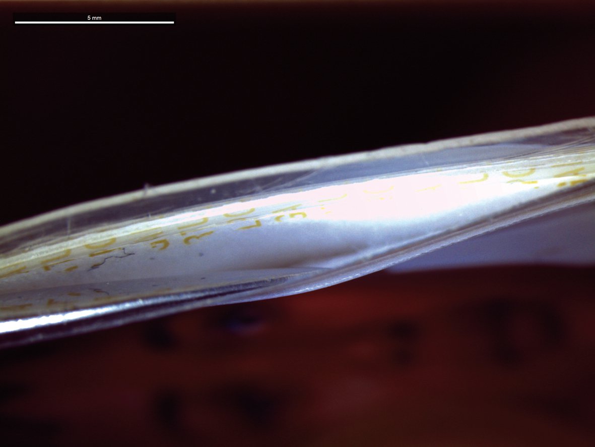 "The combination of good illumination and the 3D impression of the stereomicroscope are critically important for examining the finest details of the document’s surface structure. The details of better forgeries only show up under the microscope – for instance, attempts to imitate laser engraving, gravure or relief printing elements, or good collages where the chip, hologram or serial number, etc. have been added afterwards. There are always discrepancies somewhere – at the edges, the transitions of fine linear printing patterns, or the orientation of the paper fibers", Fischer explains.