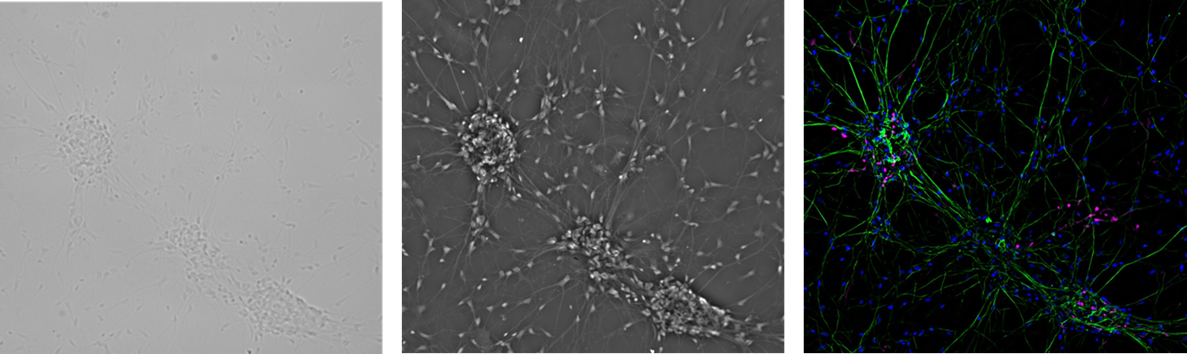 接近自然的一步就是共培养二维的几种细胞类型。共培养细胞系的例子是神经元原代培养的胶质细胞与神经元生长在一起(图4)。