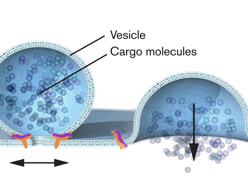 在一个大而繁忙的港口,需要系统来确保在正确的时间将正确的货物运送到正确的目的地。细胞有着称为细胞器的不同腔室,面临着类似的问题:细胞产生激素、神经递质、细胞因子和酶等分子,这些分子必须在正确的时候被输送到细胞内的其他地方,或被输出到细胞外。时间和地点就是一切。被膜包围的微型泡泡状囊泡在细胞器之间穿梭,或与细胞外膜融合,并将货物释放到外部。这是非常重要的,因为它在递质物质的情况下触发神经激活,或者在激素的情况下控制新陈代谢。这些囊泡如何知道何时何地运送货物?