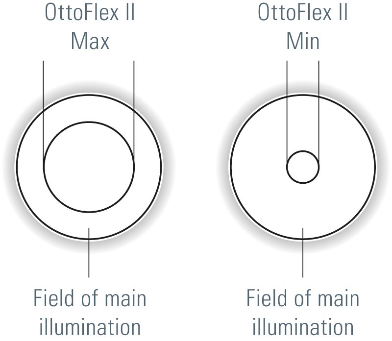 奥托夫莱克斯™ 二、 一个集成的独立照明系统,即使在低光条件下也能反射明亮的红色,并增强视图的对比度。这种独特的系统更容易观察到困难的解剖条件。直径从4 mm到35 mm连续可调,