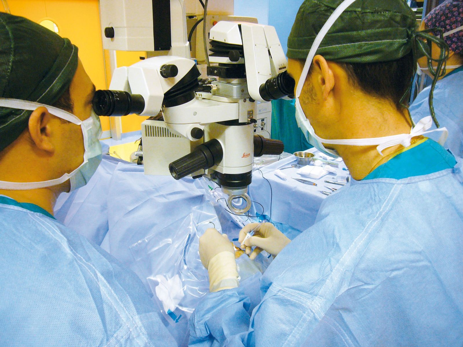 玻璃体视网膜手术通常在平面部开三个单独的切口。眼睛的这部分位于视网膜外缘和睫状体之间,既没有大血管,也没有功能不可替代的组织。其中一个切口用于输液,保持眼压稳定。照明器通过第二个切口插入。第三个切口用于放置手术工具,如玻璃体切除器、微剪、微钳。有几个通道有两个关键的优势:几个小的巩膜切开术比一个大的巩膜切开术创伤小,而且可以在没有任何压力波动的情况下更换器械。意大利Reggio Emilia医院眼科主任Luca Cappuccini博士是经验丰富的眼科医生和玻璃体视网膜手术专家,他使用这种技术的一种变型,只需要一个输液管和一个仪器管。这意味着他可以腾出双手来操作手术器械。他能够消除内光器通道的原因是高端光学和徕卡M844 F40手术显微镜的独特照明概念。